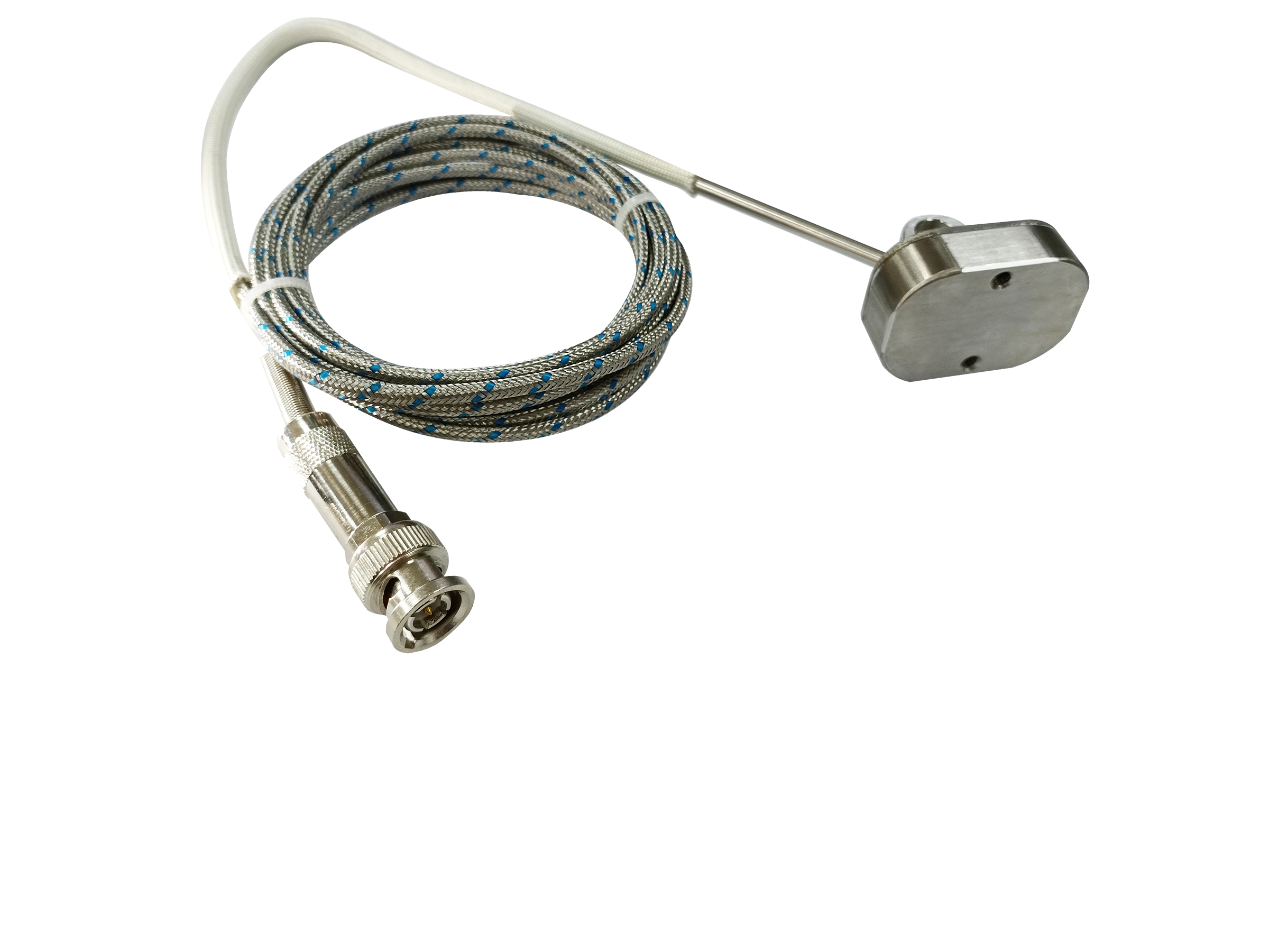 GH150 ultra-high temperature acoustic emission sensor (new model), with a high temperature resistant design metal tube length of 20cm and a cable length of three meters. The contact surfaces are all made of stainless steel material and the bottom has built-in magnetism, which can be installed and tested in ultra-high temperature environments.